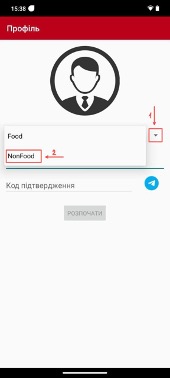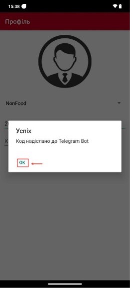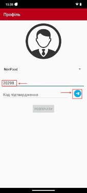 Ввести код, який отримано в BertaBot та натиснути значок телеграм, щоб отримати «Код підтвердження».