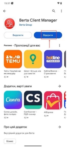 Після встановлення натиснути «Відкрити».